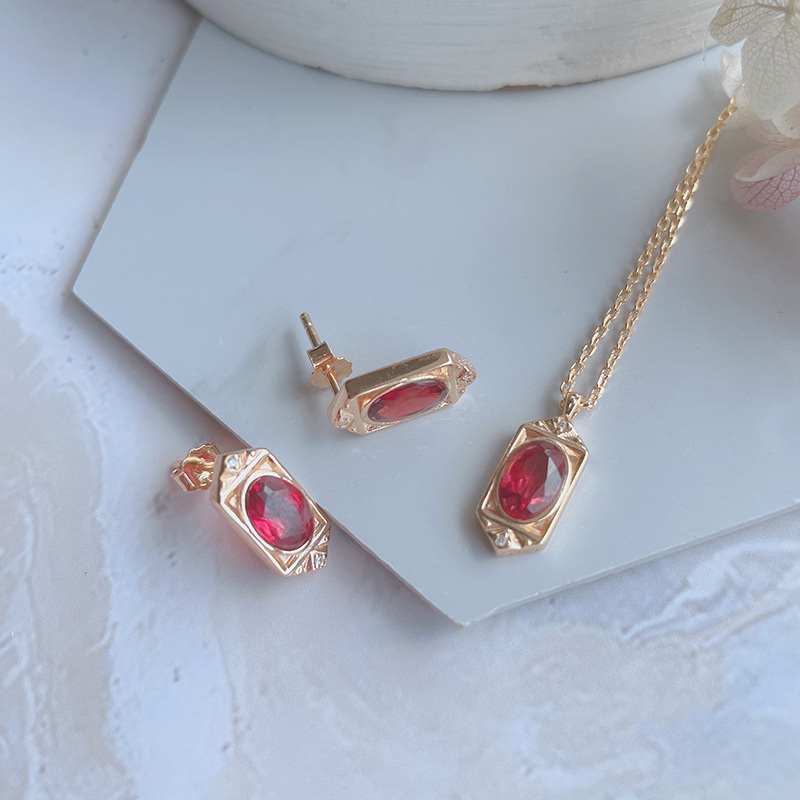 Color: garnet stud earrings, garnet necklace, Garnet Ring 10 #, garnet ring 12 #, garnet ring 15 #, garnet ring 17#