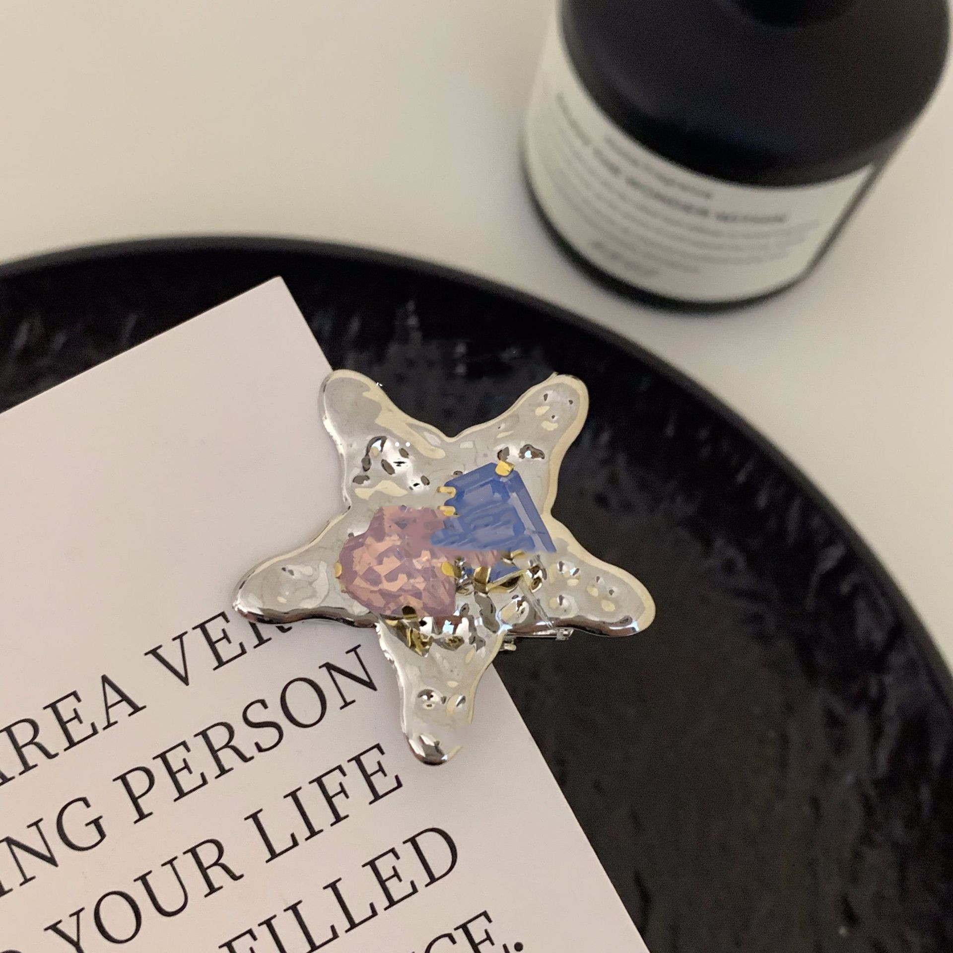 Colorful Rhinestone Five-pointed Star Duckbill Clip Retro
