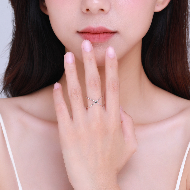 Sterling Silver Fashion Simple Cross Geometric Line Ring