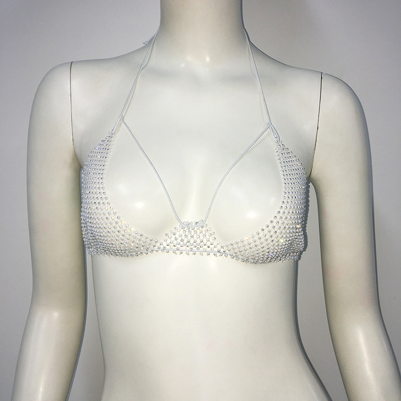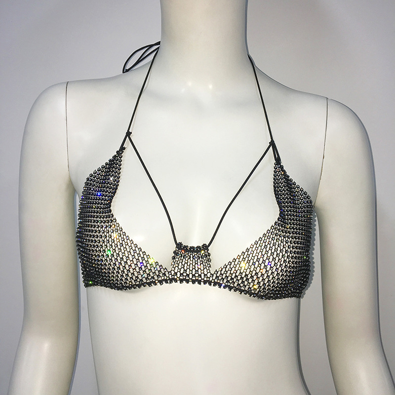 Punk Rhinestone Spaghetti Strap Bra Music Festival Top